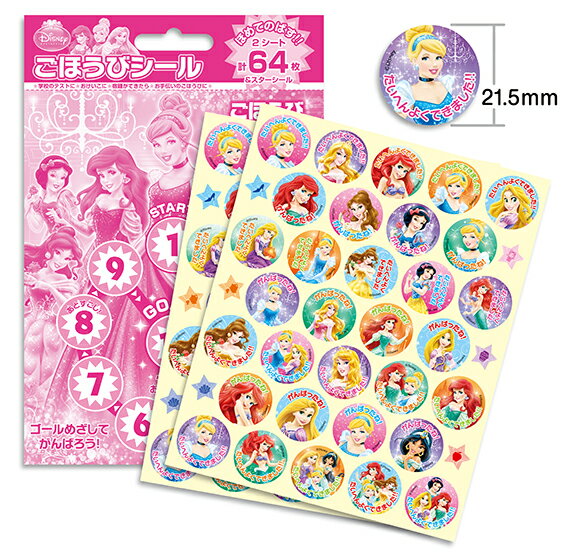 テストや宿題のほか、お手伝いやトイレトレーニングにも シール 64枚入り(1シート32枚・スターシール×2シート) シール直径 21.5mm/枚 シール台紙 < 全体 > タテ180mm ×ヨコ120mm < 絵柄部分 > タテ150mm ×ヨコ120mm 学校・習い事・塾のテストに 保育園・幼稚園・小学校の宿題に トイレトレーニングに はみがきトレーニングに お手伝いのごほうびに お友達へのプレゼントに PVC(非フタル酸)、PP、紙 ごほうびシールはこちらです。