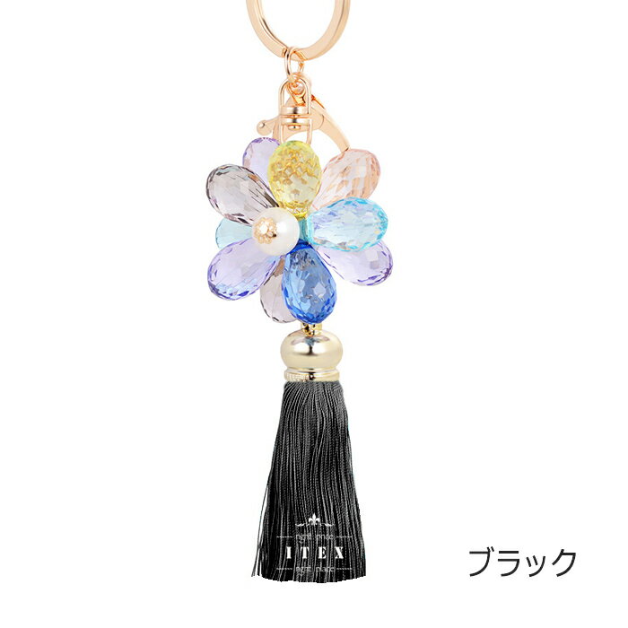 バッグチャーム タッセル フリンジ クリア キーホルダー 夏 大きい一粒 かわいい 落下防止 鍵 紛失防止 おしゃれ ビーズ ビジュー