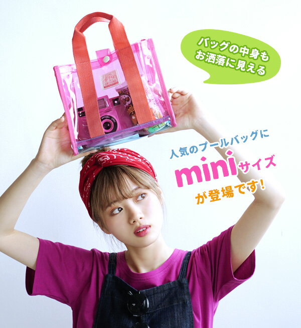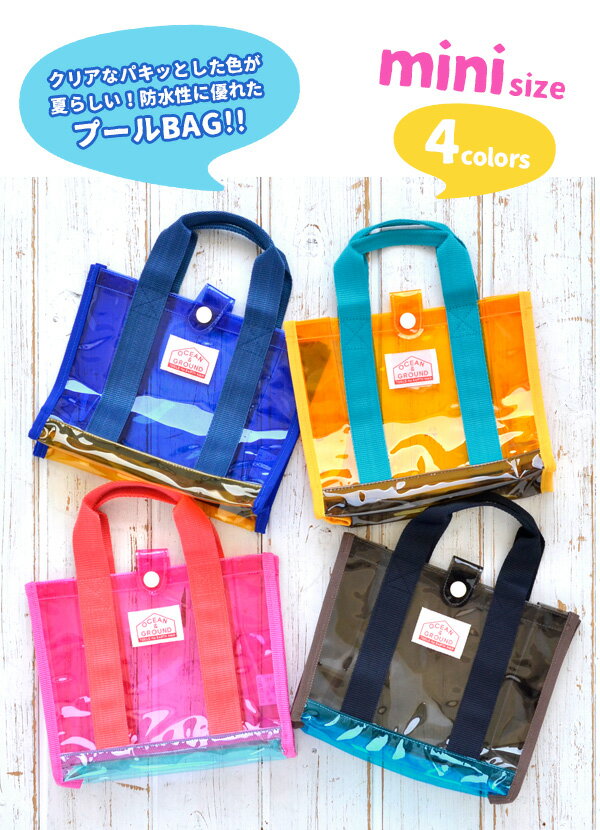 お子様のプールバッグはもちろん、大人の女性にも!人気のプールバッグにミニサイズが仲間入り!クリアでカラフルなPVC素材のミニトートバッグです。